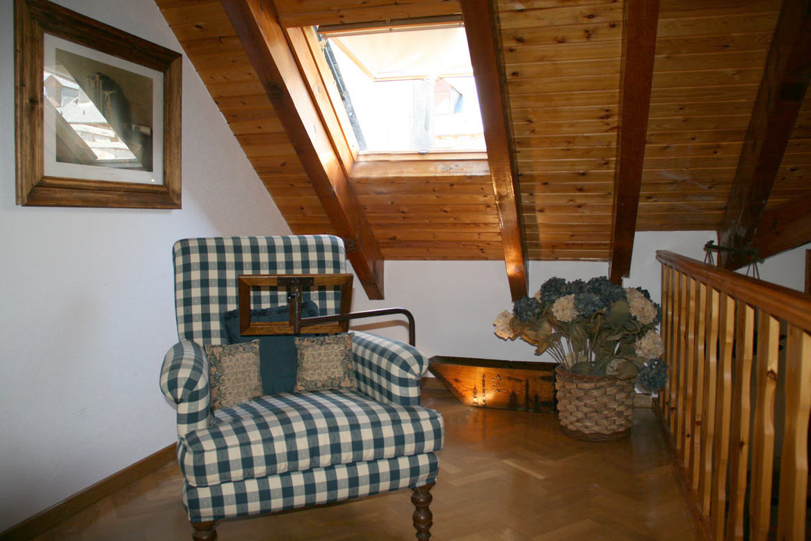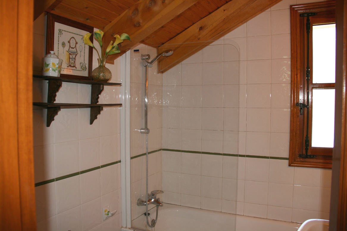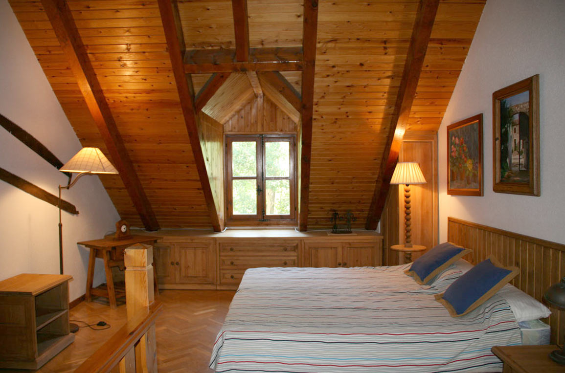 En la planta superior, habitación abuhardillada con dos camas (90) con posibilidad de dos camas extra y baño completo.